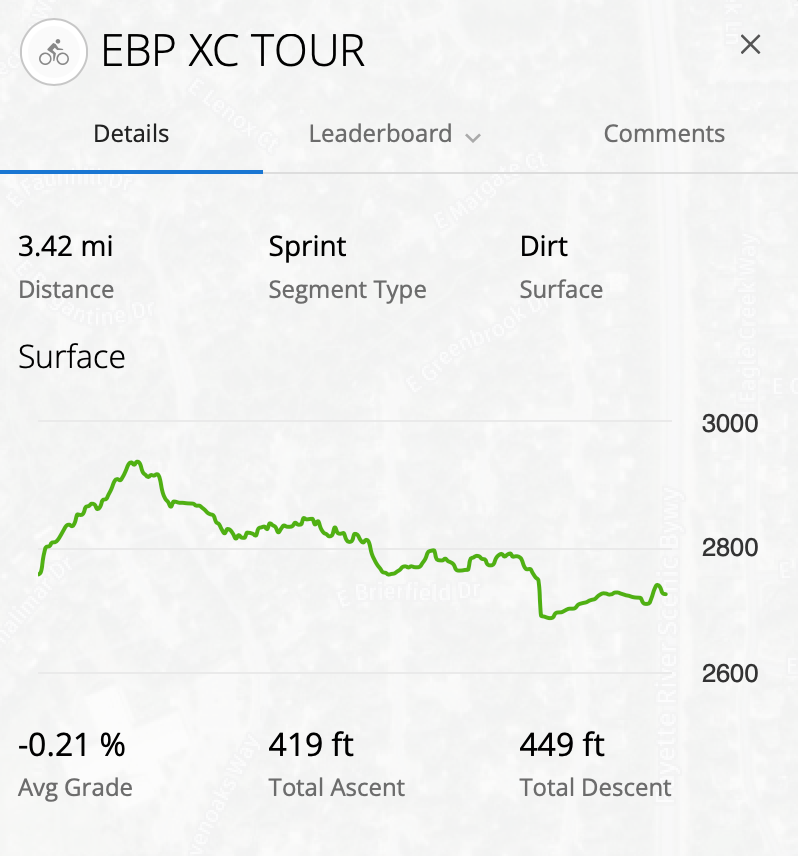 I’m kicking things off with an XC loop because lately I’ve been chasing longer segments, and I thought it’d be fun to mix it up at Eagle Bike Park. Plus, I’m curious to come back to this same loop in the winter and see if my time improves when the air is cold and I've had a couple months of consistency in the saddle.